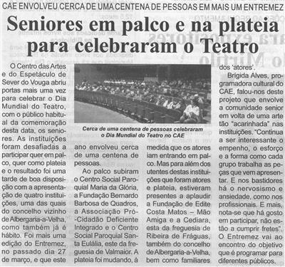 Seniores em palco e na plateia para celebrarem o Teatro : CAE envolveu cerca de uma centena de pessoas em mais um Entremez / Beira Vouga