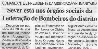 Sever está nos órgãos sociais da Federação de Bombeiros do distrito : comandante e presidente da Associação Humanitária / Beira Vouga