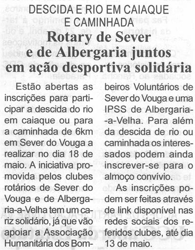 Rotary de Sever e de Albergaria juntos em ação desportiva solidária : descida [do] rio em caiaque e caminhada / Beira Vouga