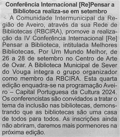 BV-N.º 1232 (1.ª quinzena ago. 2024), p. 4-Conferência Internacional [Re]Pensar a Biblioteca realiza-se em setembro.jpg