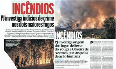 Incêndios [1.ª de duas partes] : PJ investiga origem dos fogos de Sever do Vouga e Oliveira de Azeméis por suspeita de ação humana / Rui Miguel Godinho