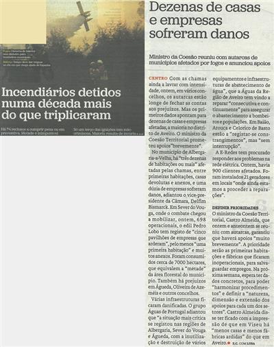 Dezenas de casas e empresas sofreram danos : Ministro da Coesão reuniu com autarcas de municípios afetados por fogos e anunciou apoios / Jornal de Notícias