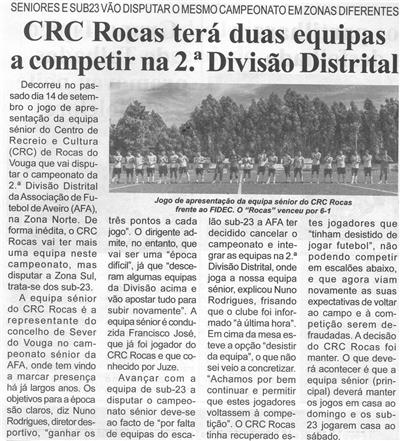 CRC Rocas terá duas equipas a competir na 2.ª Divisão Distrital : seniores e sub23 vão disputar o mesmo campeonato em zonas diferentes / Beira Vouga