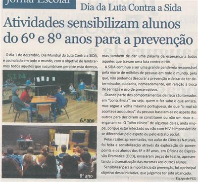 Dia da Luta Contra a Sida : atividades sensibilizam alunos do 6º e 8º anos para a prevenção / Equipa de Promoção e Educação para a Saúde (PES)