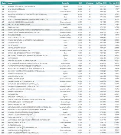 Ranking das maiores empresas de Construção Civil do distrito de Aveiro