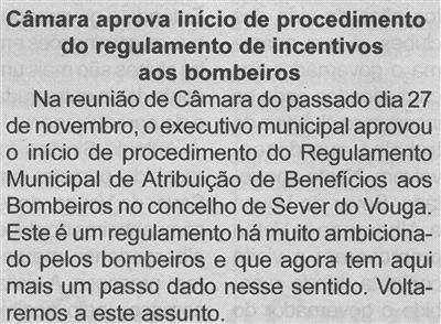 Câmara aprova início de procedimento do regulamento de incentivos aos bombeiros / Beira Vouga
