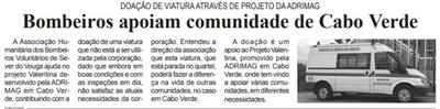 Bombeiros apoiam comunidade de Cabo Verde : doação de viatura através de projeto da Adrimag / Beira Vouga