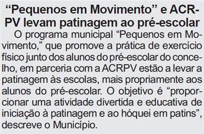 "Pequenos em Movimento" e ACRPV levam patinagem ao pré-escolar / Beira Vouga