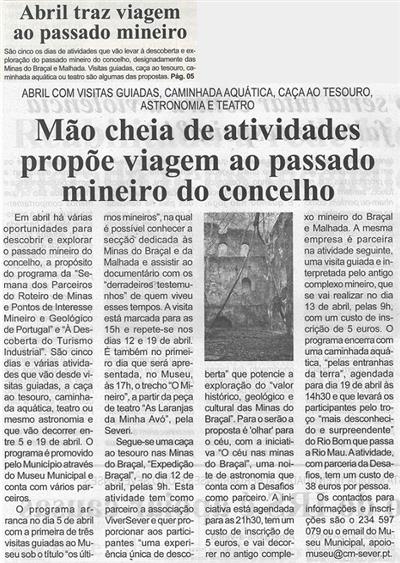 Mão cheia de atividades propõe viagem ao passado mineiro do concelho : abril com visitas guiadas, caminhada aquática, caça ao tesouro, astronomia e teatro / Beira Vouga