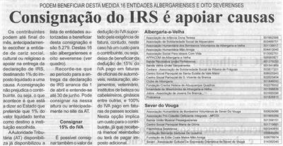 Consignação do IRS é apoiar causas : podem beneficiar desta medida 16 entidades albergarienses e oito severenses / Beira Vouga