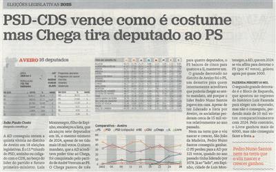 Eleições Legislativas 2025 : PSD-CDS vence como é costume mas Chega tira deputado ao PS : Aveiro / João Paulo Costa