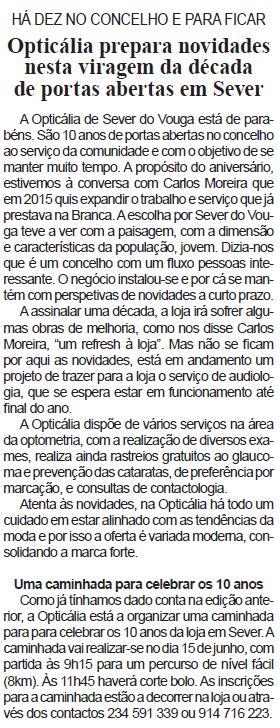 Opticália prepara novidades nesta viragem da década de portas abertas em Sever : há dez anos no concelho e para ficar / Beira Vouga