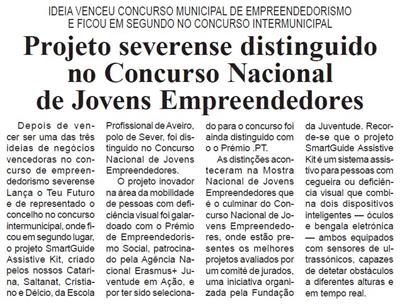 Projeto severense distinguido no Concurso Nacional de Jovens Empreendedores : ideia venceu Concurso Municipal de Empreendedorismo e ficou em segundo no Concurso Intermunicipal / Beira Vouga