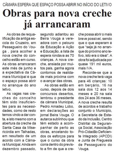 Obras para nova creche já arrancaram : Câmara espera que espaço possa abrir no início do letivo / Beira Vouga