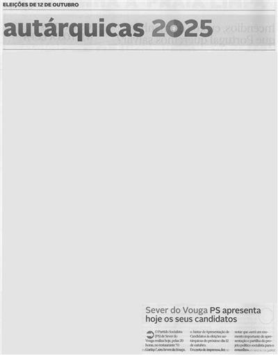 PS apresenta hoje os seus candidatos : Sever do Vouga : Autárquicas 2025 : eleições de 12 de outubro / Diário de Aveiro