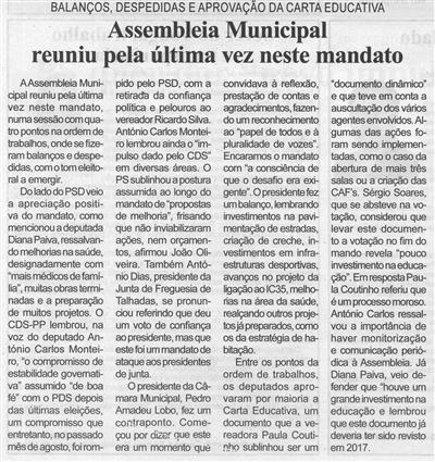 Assembleia Municipal reuniu pela última vez neste mandato : balanços, despedidas e aprovação da carta educativa / Beira Vouga