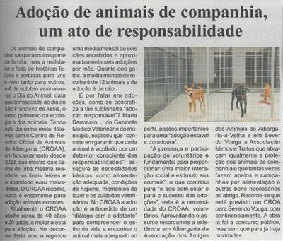 Adoção de animais de companhia, um ato de responsabilidade / Beira Vouga