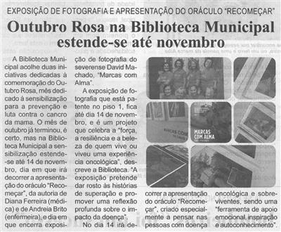 Outubro Rosa na Biblioteca Municipal estende-se até novembro : exposição de fotografia e apresentação do oráculo "Recomeçar" / Beira Vouga