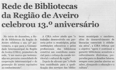 Rede de Bibliotecas da Região de Aveiro celebrou 13.º aniversário / Correio do Vouga