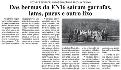 Das bermas da EN16 saíram garrafas, latas, pneus e outro lixo : Rotary e SeVerde juntos em ação de recolha de lixo / Beira Vouga