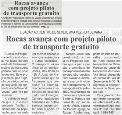 Rocas avança com projeto piloto de transporte gratuito : ligação ao centro de Sever, uma vez por semana / Beira Vouga