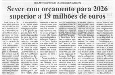 BV-N.º 1263 (2.ª quinzena jan. 2026), p. 3-Sever com orçamento para 2026 superior a 19 milhões de euros.JPG