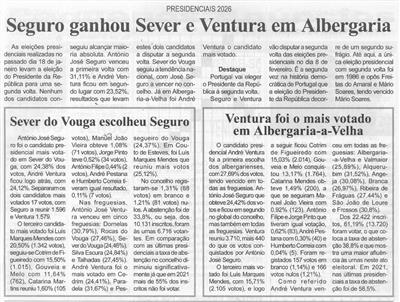 Seguro ganhou Sever e Ventura em Albergaria : Presidenciais 2026 / Beira Vouga