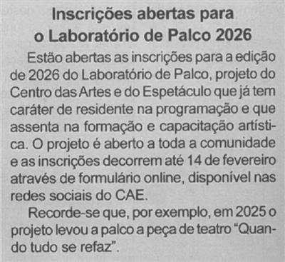 BV-N.º 1264 (1.ª quinzena fev. 2026), p. 4-Inscrições abertas para o Laboratório de Palco 2026.JPG