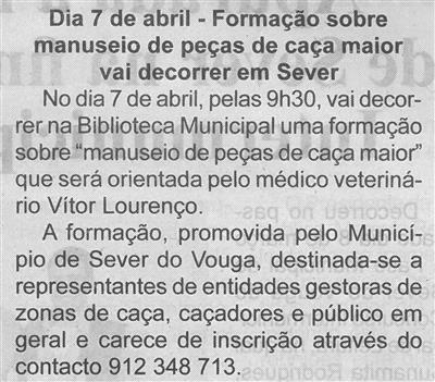 BV-N.º 1223 (2.ª quinzena mar. 2023), p. 5-Dia 7 de abril : formação sobre manuseio de peças de caça maior vai decorrer em Sever.jpg