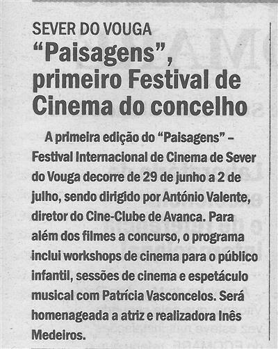 Paisagens : primeiro Festival de Cinema do concelho / Correio do Vouga