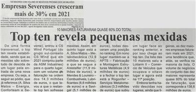 Empresas severenses cresceram mais de 30% em 2021 : 100 maiores com volume de negócios próximo dos 240 milhões