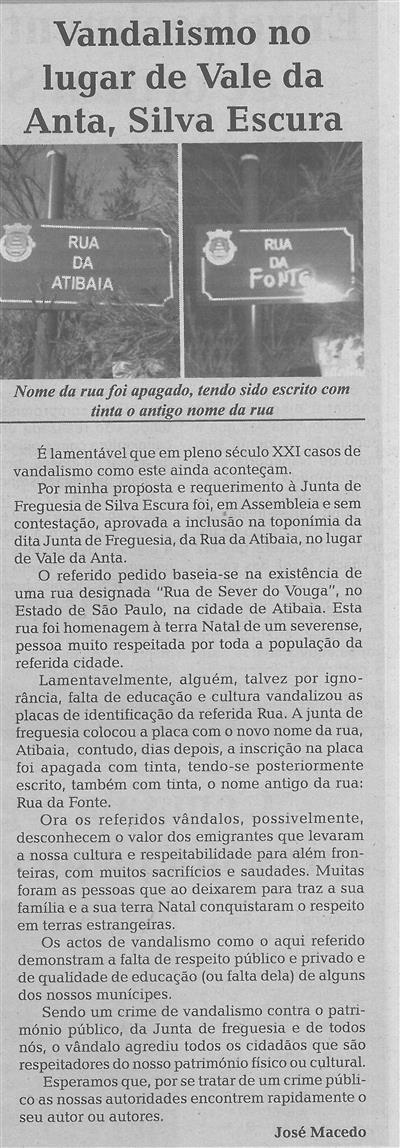 Vandalismo no lugar de Vale da Anta, Silva Escura / José Macedo
