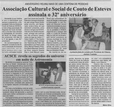 Associação Cultural e Social de Couto de Esteves assinala o 32.º aniversário : aniversário reuniu mais de uma centena de pessoas / Mário Silva