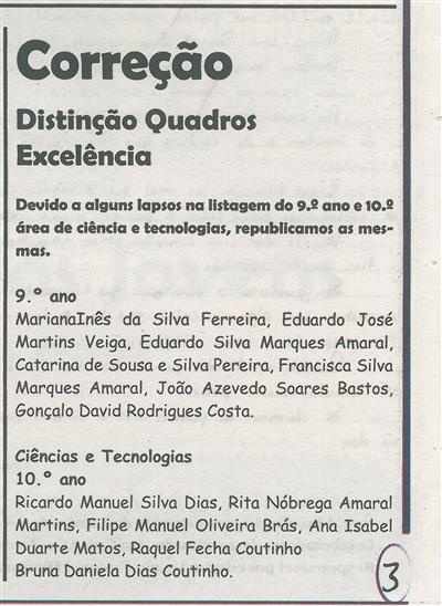 Distinção Quadros Excelência : correção / Jornal Escolar