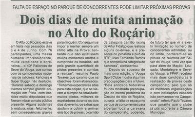 Dois dias de muita animação no Alto do Roçário : falta de espaço no parque de concorrentes pode limitar próximas provas / Beira Vouga