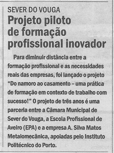 Projeto piloto de formação profissional inovador / Correio do Vouga