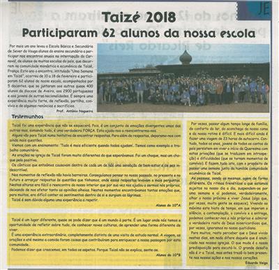 Taizé 2018 : participaram 62 alunos da nossa escola / António Nogueira; [colaboração de] Eduardo Veiga