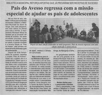 BV-1.ªout.'18-p.6-Pais do Avesso regressa com a missão especial de ajudar os pais de adolescentes : Biblioteca Municipal reforça apostas que já provaram ser receitas de sucesso.jpg