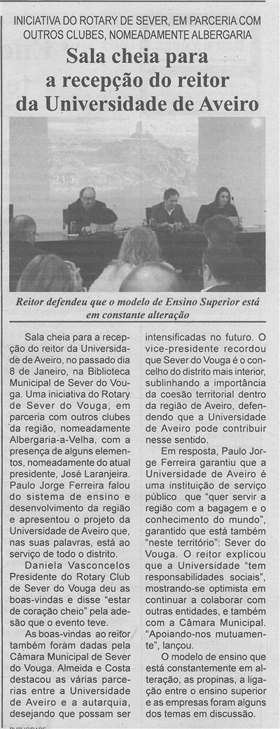 Sala cheia para a recepção do reitor da Universidade de Aveiro : iniciativa do Rotary de Sever do Vouga, em parceria com outros clubes, nomeadamente Albergaria / Beira Vouga