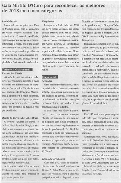 Gala Mirtilo D'Ouro para reconhecer os melhores de 2018 em cinco categorias [2.ª de duas partes] / Terras do Vouga