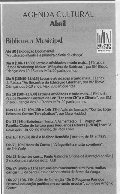 Agenda Cultural [de] abril : Biblioteca Municipal / Terras do Vouga