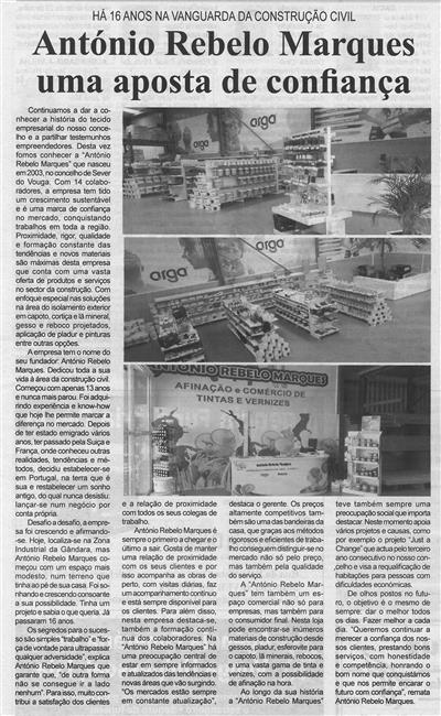 António Rebelo Marques : uma aposta de confiança : há 16 anos na vanguarda da construção civil / Beira Vouga