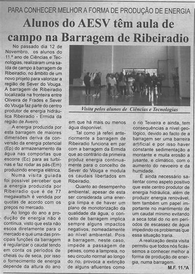 Alunos do AESV têm aula de campo na Barragem de Ribeiradio : para conhecer melhor a forma de produção de energia / Beira Vouga