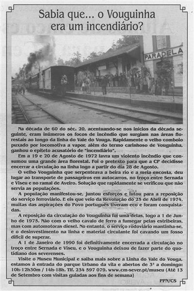 O Museu Municipal conta-lhe : sabia que o Vouguinha era um incendiário? ; Linha do Vale do Vouga
