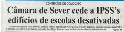 Câmara de Sever cede a IPSS's edifícios de escolas desativadas : contratos de comodato / Jornal Beira Vouga