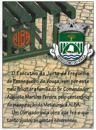 [Centenário da inauguração da Metalúrgica ALBA] / Executivo da Junta de Freguesia de Pessegueiro do Vouga