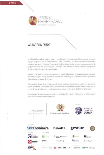 Aveiro debate novo rumo para a economia portuguesa [5.ª parte de cinco] : 7.º Fórum Empresarial [do] Distrito de Aveiro : agradecimentos / InfoAIDA