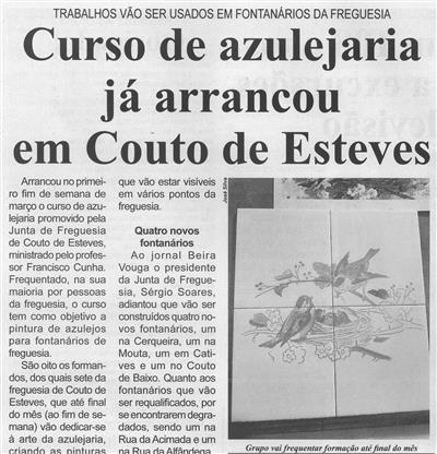 Curso de azulejaria já arrancou em Couto de Esteves : trabalhos vão ser usados em fontanários da freguesia / Beira Vouga
