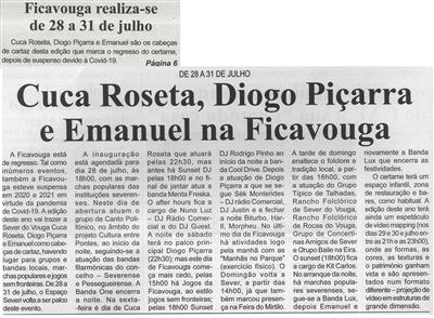 Cuca Roseta, Diogo Piçarra e Emanuel na Ficavouga : de 28 a 31 de julho / Beira Vouga