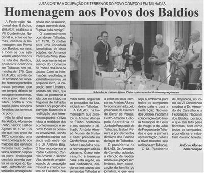 Homenagem aos Povos dos Baldios : luta contra a ocupação de terrenos do povo começou em Talhadas / António Afonso